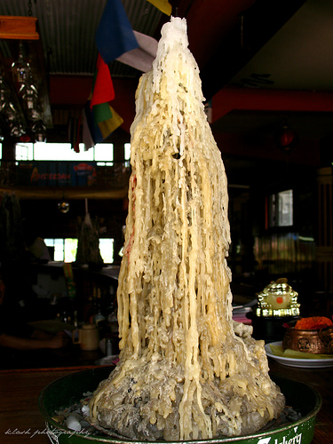 Accumulation of wax since 9 years in the stand, at Amsterdam Restaurant, Lake Side