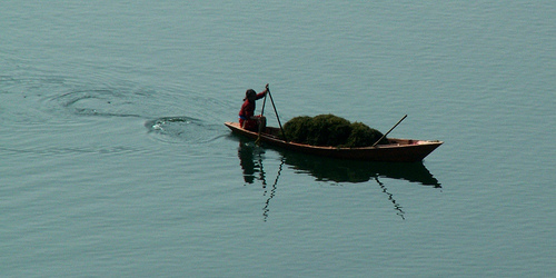 Cleaning the floating lilies in Fewa lake