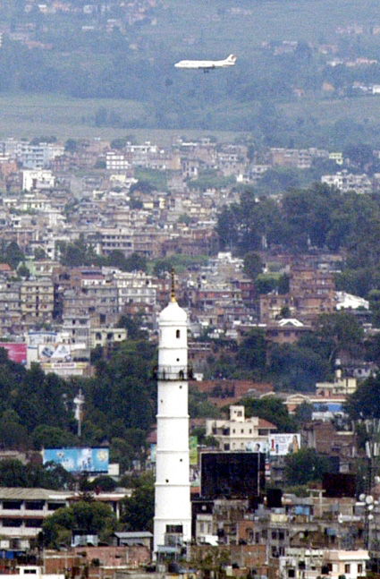 भिमसेन स्तम्भको रुपमा चिनिने काठमाडौंको धहराको वरफर देखिने दृश्य। तस्वीर – वीक्ली नेपाल
