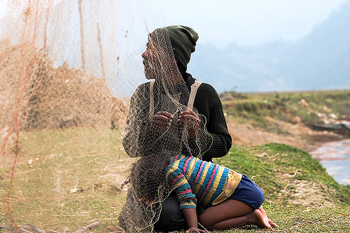 Peasants in Khaharey, lake side