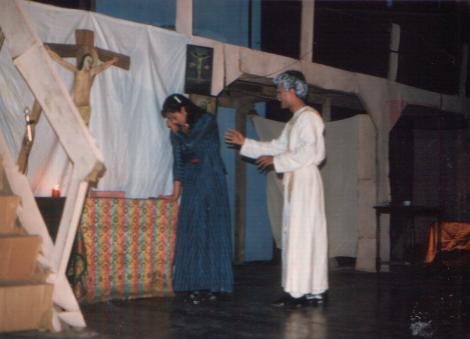Friends, It was a "video movie" shown on the big screen of Bhrikuti Mandap by a projector. Yes, it is "Saugat". The quality of the movie was extremely poor. I accepted it solely for the role, not for the quality. NTV used to air songs from "Video films" on Saturdays and occasionally I used to be a character to be made fun of at my home ! " hera hera hero ko taal. yesto pani hero hunchha." Poor me, didn't know ghaanti herera haad nilnu parchha bhanne kura. All I cared was the big size of the bone. I do not have a copy of the movie. I did have songs from the movie. However, it is in PAL system. Haven't watched it since I came to the US. I think I still have fascination for acting. I am not sure about the talent though. In any case, I miss those Naatak-cinema tira baraalinda ka dinharu. Here is a pic from the Naatak "Romeo Juliet". I played the role of the priest Friar Lawrence.