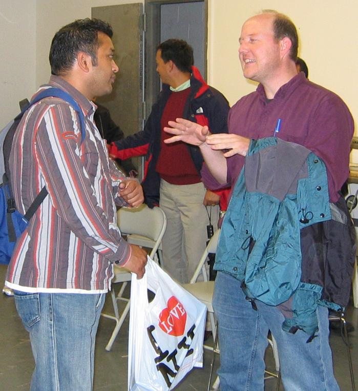 Chatting with a participant... Dear Nepeji, I am not sure what you had in your mind while posting this picture.But doesn't it sort of display a future "american yes-man" in the making.Look at how that gentleman on the right instructing a young student of liberation 101 represents america.And how this naive young idealist foreign land of a weaker nation has to listen to him with the I LOVE NEWYORK on his hand. I find it disturbing.Are we that parasitic?Even if that incident had taken place.My personal opinion is it shouldn't have been posted.It shows how we look for strangers in restoring dignity in our soul in liberating Nepal in Gagan's case.Well,good luck in learning about freedom from the Americans....and delivering it to Nepalese...