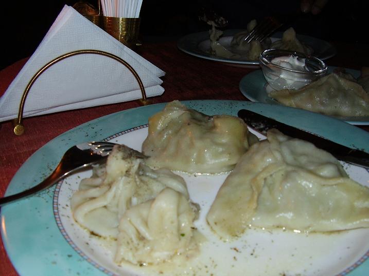 It was time for lunch........We wanted to try some cheap food so me and a fren just wandered around NEVSKY PROSPEKT but could not find anythin which suit our pocket. We just entered one restaurant, We ddnt know wt to order as all the items were Russians. We just ordered someting called HENKILE and MANT coz they were the cheapest............ to our GREATEST surprise the food we ordered was just like MOMO...........