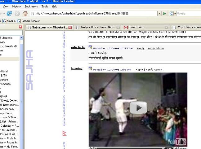 त्यो झिल्के ले टाँसेको भिडिओ माथि केहि नलेखेको रैछ त्यसैले ल पोस्ट् गर्दै जाम् ठिक् हुन्छ। अनि नमेलाई मुरि मुरि धन्यबाद् नया अनि सुन्दर् चौतरीको लागी।