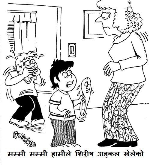 भकुन्दे के भो त्यो किसनेको कुरा नसुन्नुस। हिजो गोपिनिहरु सङ जिस्केर बसेरोबसेको सानानिले थाहा पाएर उस्लाइ कोथामा थुनेर राखेको भएर उस्को आज् मुद अलि अफ च क्या।