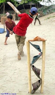 उबेला त्यसरी नि खेलियो क्रिकेट चाँही ! दाउरा को ब्याड मोजा को बल अनी विकेट चाँही तेस्तै तेस्तै ! लोल