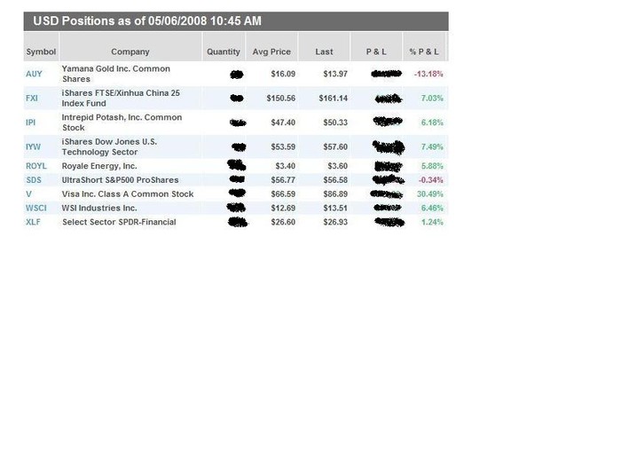 Here comes one more new trader. Thanks to emini; IB is very cheap compare to scottrade and things like that. I have been trading on IB for about a couple months now. Having fun so far! Made some money and lost some on some stupid option plays (bought puts on LEH even after knowing that they had $98B of liquidity). Anyway, let's share some money making ideas! Several heads are definately better than one head.