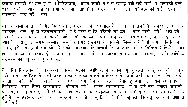 गगन थापा (वा जोसुकै) लाई पहिले आफैले मसिहा भनिदिने अनि त्यसैमाथि कछाड माथि सारी सारी उफ्रने झल्ला झगडामा सामेल हुने इच्छा छैन मलाई । परन्तु, गगन थापाहरुले प्रतिनिधित्व गर्ने क्रान्तिकारी तप्काका सामु पहिले दलहरुको झल्ला नेतृत्वसंग लड्ने कि राजासंगको लडाई सकेपछि मात्र लड्ने भन्ने दोधार र दलहरुका झल्ला नेतृत्वसंग जहिले लडे पनि लड्ने कसरी भन्ने ठूलो चुनौती र अनुत्तर रहेको कुरालाई भने स्वीकार गर्नै पर्छ । यी चुनौतीहरुलाई सर्वांग नङ्ग्याउने हदसम्म भने म सबै पोस्टरहरुको योगदानको कदर गर्छु । (लज्जा मैले पनि ल्याएँ कुटनैतिक पारा, हैन त ?)