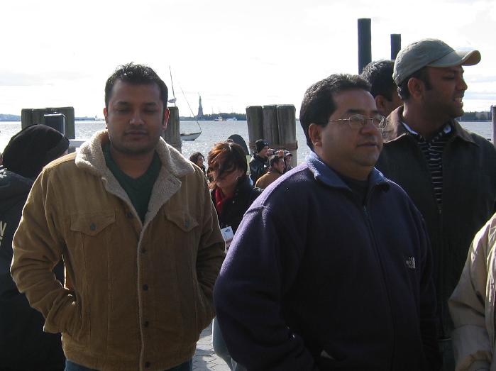 Gagan Thapa during a quick sight seeing of NY landmarks with Nepali friends before he left for London... (Statue of Liberty on the background)