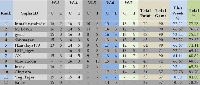 Anyway, our own ranking stays pretty much the same where it was last week . Himalayandude still perches at the top