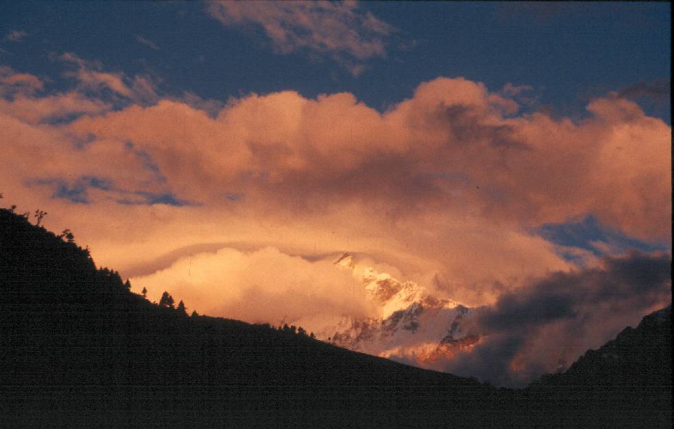 Sunset on Nilgiri on route -- Dana to Tatopani