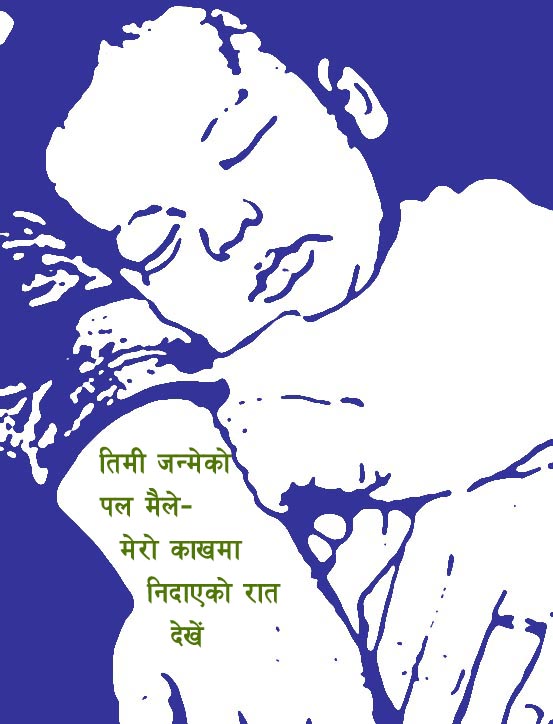 "तिमी जन्मेको पल" तिमी जन्मेको पल मैले- सूर्य, चन्द्र र ताराहरुबाट दिन, रात, साँझ र बिहान भन्दा फरक नयाँ आयाममा समयबिस्तार पाएँ, तिमी जन्मेको पल मैले- कमलझैं रात फक्रिएर आकाश खुल्दा हजार स्वप्नपुष्पहरुको अवतरण देखें, तिमी जन्मेको पल मैले- तिम्रा कोमल आँखाहरु डुलाएर नयाँ सुन्दर संसारको दर्शन गरें तिमी जन्मेको पल मैले- मेरो काखमा निदाएको रात देखें मेरो छातीमा ब्युँझिएको आकाश देखें।