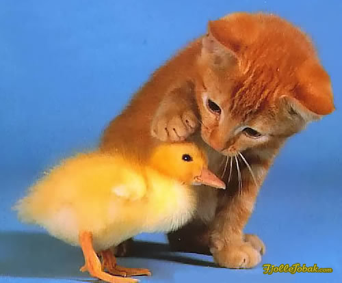 Cute duck says the kitti