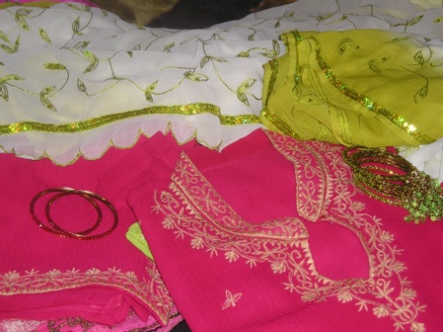 आहा कस्तो राम्रो सारी मलाइ त्यो व्हाइट र ग्रीन्। हाहाहा देखेउ त तिते मलाई त दुइ दुइ सेट्। चुरा पनि रैछ आहा।