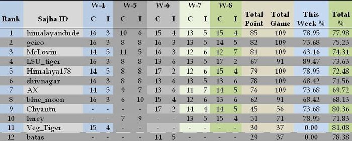 **Week 8 Results**