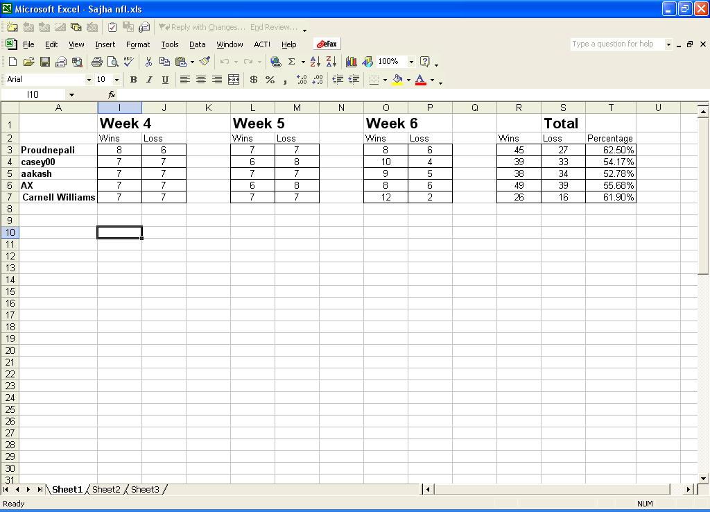 week 6 results.....