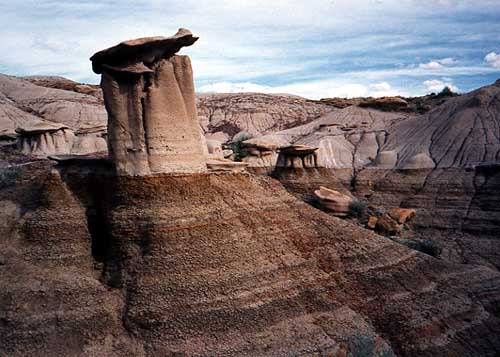 OOPS Did not find any military-minded enthusiast to answer my question SE-5. ANSWER: The picture shows a Sukhoi-30 of the Indian Air Force (SU-30 MKI) the most agile aircraft ever made. SU30s are famous for "cobra", which means, the aircraft can, for a short moment of time, fly in the perfect horizontal direction while its fuselage lies truly vertical (nose up and tail down, like ppl walking). It remains quite beyond the comprehension of western aircraft designers. Surprisingly, even the Russian Army possess a lower version (SU-27, i guess) or they have not publicized it. Another variant of SU-30 is owned by the Chinese Army, however, is not as powerful as the Indian version. Interestingly, in a joint exercise with the Indian Army last year, the Pentagon assessed that the chance of survival of an F-15Eagle (the most agile fighter plane of the west) is only 1/10 which means that for 9 out of 10 cases, the SU30MKI would wield over any any other fighter plane given the level of pilot-intelligence remains comparable. The next Sukhoi in development is expected to perform purely aerodynamic sommersaults. Interesting-eh? SE-6 The following picture shows a "HOODOO" structure. It is a mushroom like formation in erodible soils caused due to the weathring of environmental forces. Name the province which is famous for hoodos in Canada. (a) Drumheller (b)Alberta (c)Manitoba (d)Crowfoot Hint: This oil-producing province got unexpectedly so rich due to the rise in oil prices and now has announced that EVERY resident of the province will be given CDN$ 400 as a New Year's gift. ठर्रा कति खाने यार, एउटाको $1 पनि पर्दैन केरे । तेलको भाउ बढेको उपलक्ष्यमा पनि खुशी मनाईनी भयो यो पटक. whoa!!! Keep rolling...