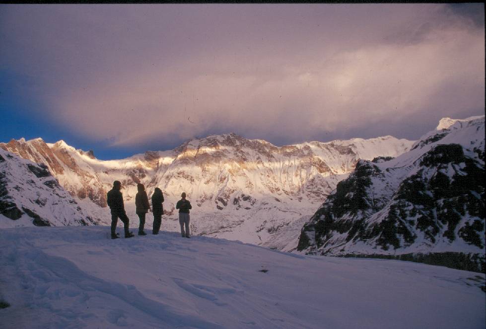 Trekkers at Sunrise at Annapurna Base camp