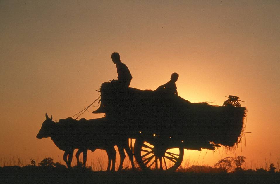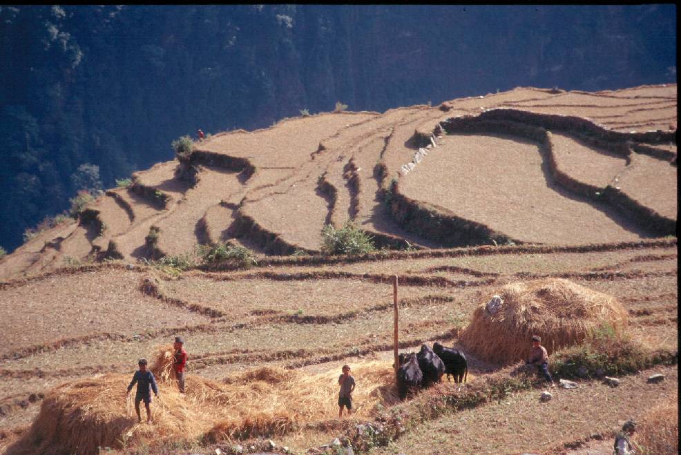 Farmers, kids, cows, fields, ravine...on the way to Ghand