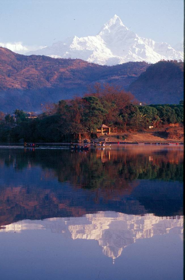 Fishtail and it's image on Phewa Taal