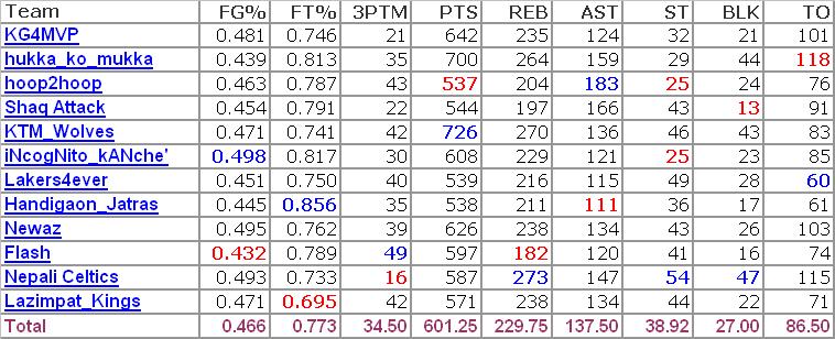 Hey folks, Let us start our discussion here. Those in The Nepali NBA fantasy league. Maybe we can do a bi-weekly update rather than weekly. We will have time to capture more trades/FA acquistions, or other interesting turn arounds in our league. Let's keep it alive. Go CELTICS jai Nepal