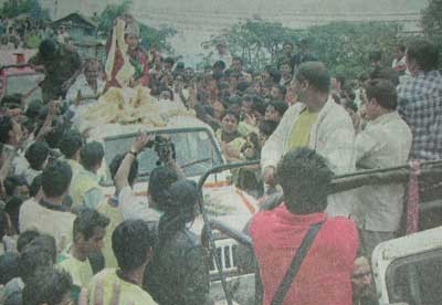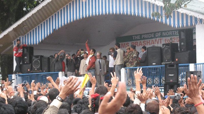 Indian Idol Contestant Prashant was welcome at Siliguri and Darjeeling in a massive way by fans Gangtok September 4: It was a massive and unprecedented welcome to Prashant Tamang, the Indian Idol contestant who reached in top three in the competition at Darjeeling by his fans. Tens and thousands fans gathered right from New Jalpaiguri who reached from Kolkatta via Darjeeling mail. The fans lined up right from Siliguri to Kurseong up to Darjeeling. Many fans offered him Khadas and greeted him. The jubilant Darjeeling fans celebrated his arrival as if he had won the Indian Idol. The welcome ceremony was given in a unique manner which was not given any political leader of the hill so far. Because of resounding welcome by many people, his long caravan reached Darjeeling nine our late. Firstly, he was taken to St. Robert School and then Chowrasta where about one lakh fans gathered to have look of Prashant. He sang some lines of the songs and he was taken to North Point ground where he sang at least three songs and entertained his fans. The representative of his fans from Sikkim too attended the function.