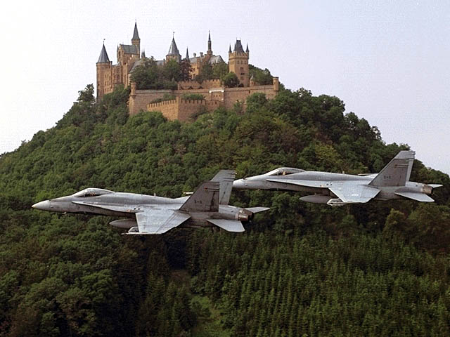More of CF-18 Hornets Canadian CF-18 Hornets reccee past the castle at Baden-Wuerttemberg ;)
