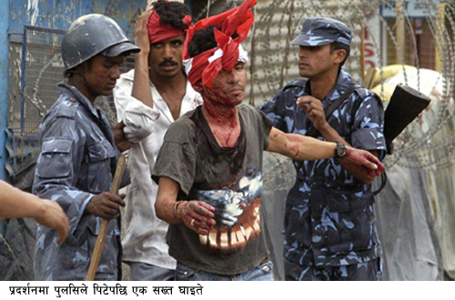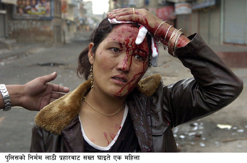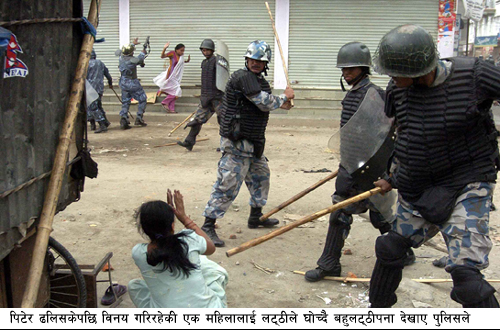 चौतारीमा लाठी चार्ज! मास्टरनीको टाउकोमा खति।