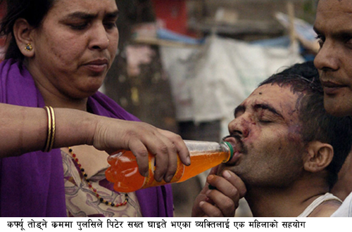 पिरतीले भउतेलाई पानि दिँदै।