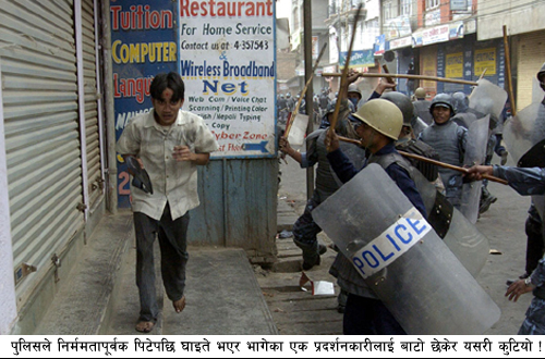 चौतारीमा पनि नारा-बाजी अर्नु परो जिम्माल-बा। देश जलिरहेछ, हामी मात्र के बाँसुरी बजाएर बसिराख्नु। :-) लोकतन्तर- जिन्दाबाद :::: जिन्दाबाद, जिन्दाबाद ! निरङ्कुश शाषक चाहिँदैन :::: मान्छे मार्न पाईँदैन ! :-) -भउते