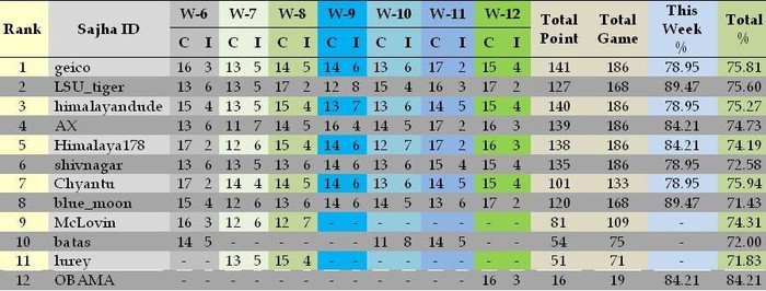 **Week 12 Results**