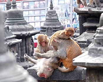 Shanti ko pratic Swayambhu.... as seen from Bisal Bajar.... at foreground roof of Talaju temple can be seen.... [sorry frens last one for today...]