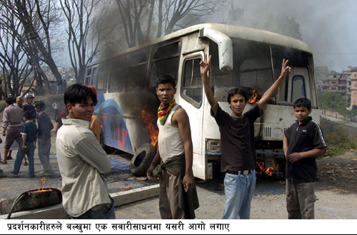 आशु हैन आखामा हेर ! ज्वाला बलेछ मुक्तिको लागि नेपाली मुटु धड्किरहेछ खोर बाट ब्वसोलाई मैदानमा ल्याउनुछ पुत्ला होईन अब यँहा महा-दानव जल्नुछ