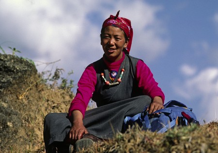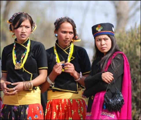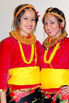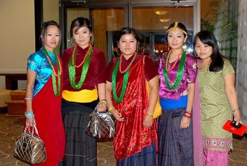 Tamang ni beauties in their beautiful costume. The Tamang (also known as Murmi) are one of the several ethnic groups living in Nepal descended from Tibeto-Burman origins. Living mainly north and east of the Newars in the Kathmandu Valley, they constitute 5.6% of Nepal's population, which places their population at 1,280,000, slightly higher than the Newars. Due to their geographical location, their language is vaguely intelligible with Nepal Bhasa but closely related to both Tibetan and Sherpa. The name Tamang, in Tibetan, means horse traders, which suggest that their ancestors came from the north and traded horses with the local community (Newars) and later settled and intermarried among them. However, many of them today earn a living through serving as porters. Like the Sherpas, they are also good mountaineers and mountain-guides. Some of Tamang are also recruited to serve in the British and Indian Gurkha regiments today. The Tamangs are followers of Tibetan Buddhism mixed with elements of the pre-Buddhist Bön and the Tambaist religion. Due to their proximity to the Newar, a slight Hindu influence can be seen in their practises. Their priests include Lama, Bombo and Tamba. According to the 2001 census, 90.26% of the ethnic Tamang in Nepal were Buddhists and 7.69% were Hindus. The typical song and dance of the Tamangs is "tamang selo" in which they dance to the beat of a drum called "damphu." Damphu is the traditional drum of the Tamangs. Many Tamang clans do not permit intermarriage with other ethnic groups, although some clans do permit intermarriages with the Gurung, Magar, Newar, Rai and Chhettri. Their descent is traced patrilineally. Points to be taken: The Muluki Ain (National Code of Nepal) of 1854 set by the Rana rulers prevented Tamangs from joining British-India-Army and any government jobs in Nepal, except as Pipa (‘porter’) in Pipa Goswara office in Singha Durbar in Kathmandu. ~ Krishna B, Bhattachan, PhD The name Tamang, normally it is "Tamag" in Tibetan, means horse warriors, Tamags were border police sent by king Trisong of Tibet around 755. Kirat Itihas mention in "The History of the Kirat People" 2003, that the Tamang tribe of Nepal was brought to Kathmandu Valley by King Srong-sen Gampo of Tibet in the 7th century AD as a cavalry division. Their own tradition also says that their original habitat was in Southern Tibet in a place called Uichang. Tamang officers made Central Nepal their permanent settlement and settled around the Kathmandu valley and renamed villages after their names. Their villages were respectively called Moktan kipat, Bal kipat, Bomzan kipat, Ghising kipat, Pakhrin kipat, Yonzon kipat, Syangdan kipat, Thing kipat, Goley kipat, Giaba kipat, Mikchan kipat and Bozu kipat in the Chatara and Dhading districts. They ruled these villages till the Gurkha invasion in the west. Their kipat lands were annexed to the Gorkha Kingdom during the reign of King Prithvi Narayan Shah in 1768 AD.