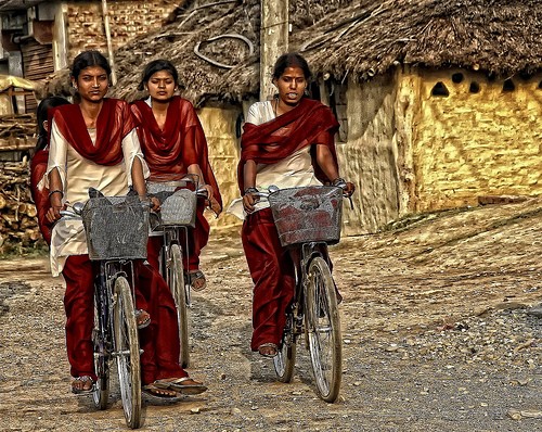 Beautiful Nepali girls i saw riding a bicycle in Bhairawa approaching my direction.