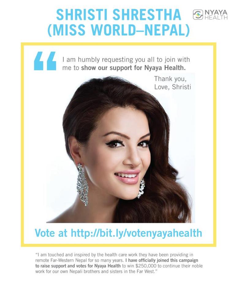 Join Shristhi Shrestha and show your support for Nyaya Health! Cast your vote for women, dignity and justice in action at http://bit.ly/votenyayahealth NOW!