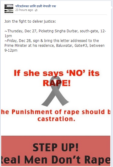 We are aware of the fact that you committed yourself to ensuring justice for the victims of these cases during your 17:30 pm meeting yesterday, 13 Poush 2069 (28 December 2012), with women’s rights activists and representatives of Sita Rai and Saraswoti Subedi. You also committed during yesterday’s meeting to carry out a specific series of actions to ensure justice. To make it easier for you to convert your promises into action, we have compiled your verbal promises into a clearly written list of demands.
