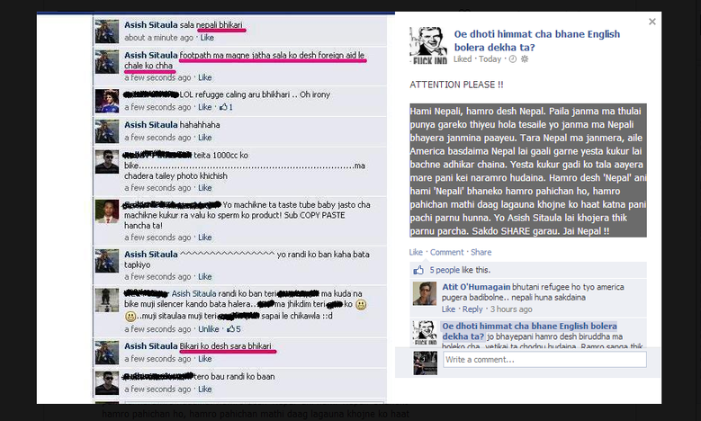 How ironic is it that the person posting this pic is talking about someone talking shit about his country and his people, while the screenshot comes from a facebook page that shamelessly bashes Indians?
