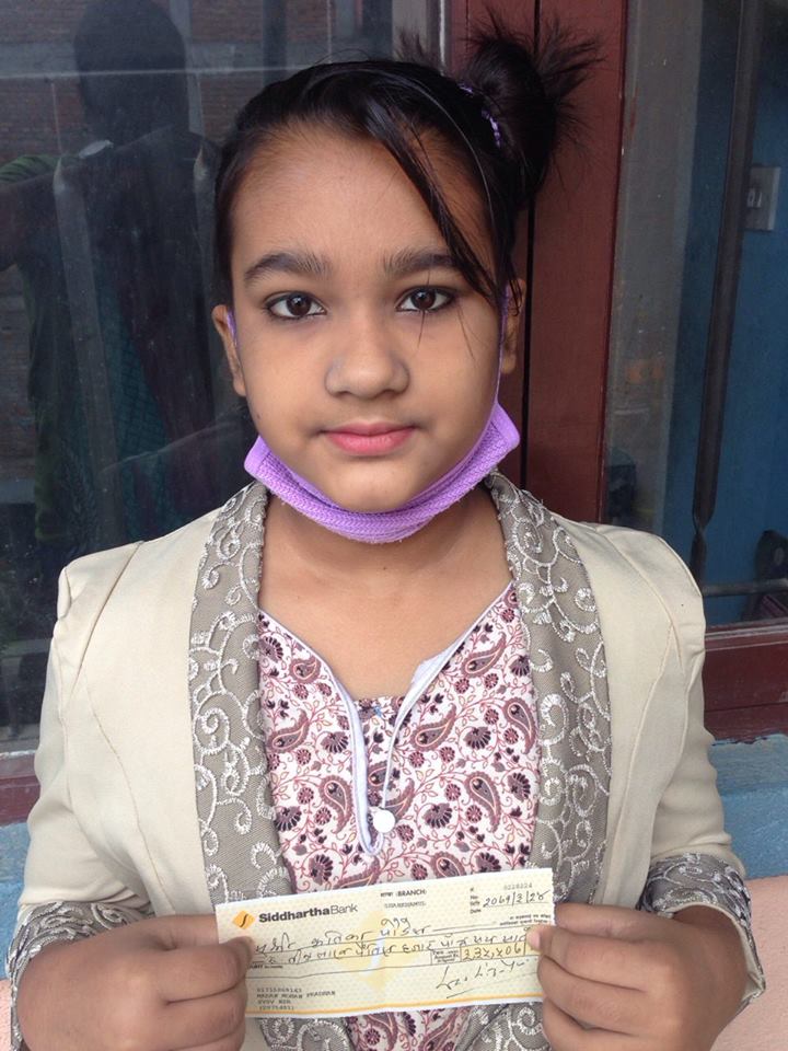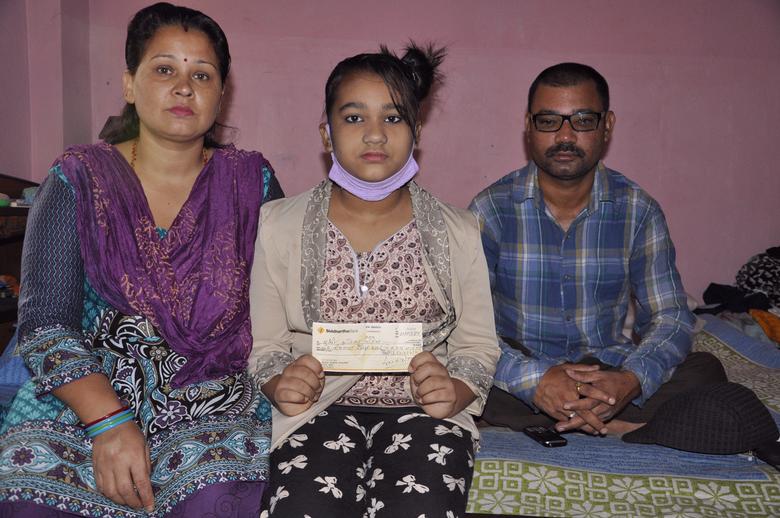 A check was drawn in Kritika's name for Rs. 335,507.00 was handed to Kritika and her parents this morning.