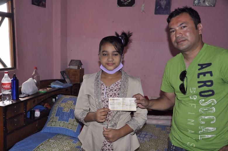 There was some delay in handing the checks since Kritika lives in Biratnagar and we had to coordinate their arrival in Kathmandu. Special thanks to Subhasini Shrestha for communicating and coordinating with Kritika's family, and special thanks to Pratik Pradhan for coordinating the transfer of check to the Paudel family.