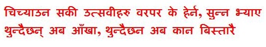 Wow! I am getting good. Here is my impomtu Ser. Ma gungunau mera bahulatthi ka gana haru Tesmai pani Desh Prem le oot prot bhab aoos. 2 Seems like you just have to think about Gyane, and the Ser floods.