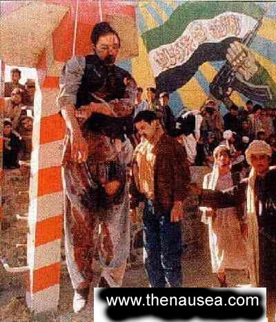 This just came in from Kathmandu. The government of Nepal banned the public display of the following items in any libraries, newspapers and books. The list: 1. The pictures of execution of Afghan president Najibullah and his brother (also called Butcher of Kabul). The pictures are given below so that Sajha readers won't commit any crime in Nepal by inadvertently carrying it with them. The government said it was a necessary measure, "those heinous crimes were done by world's most hated terrorists, the Talibans." the spokesman for Nepal government said. "We want to show to the world that we are against the terrorists." Asked if it has anything to do with the fact that brother of Najibullah, also nicknamed "butcher of Kabul", shared a part of his nickname with the crown prince, also nicknamed, "butcher of Kathmandu", the government spokesperson laughed it off. When asked whether the fight of RNA against the Maoists will be considered more or less same as the fight of Najibullah against the Taliban, the government spokesperson said nothing in reply, but later asked this newspaper reporter to be cooperative and not to ask any such ludicrous questions. "Remember, " He said, " Until yesterday, you journalists asked the question, we replied. From now on, we dictate something, and you write it in your paper".