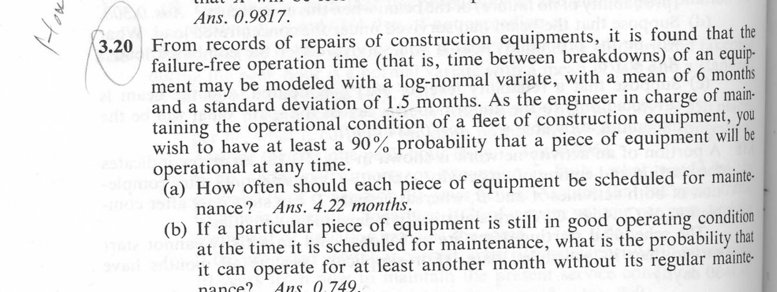 try to solve this problem taking natural log of mean as it says log-normal variate. If I am right, you should be able to get closer answer if not the exact one.