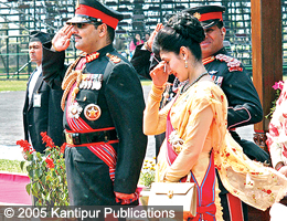 That's just a feminine salute guys. Paras is yet to train her how to respond to the army greetings. This chap has very little time to teach her the royal styles. Dhyan jati lafada baji ma chha yubraj ko. Ani kabata hoss? Jaso taso 3ta chhorchhori paune time chai milechha mausuflai. Milyo nai hola bhannuparo, aile lai.