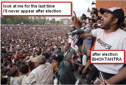 It's funny he's getting popular. He used to smoke weed with us. But, knowing him for a while, he used to be royalist (I mean he used to hang with nirajan and paras).