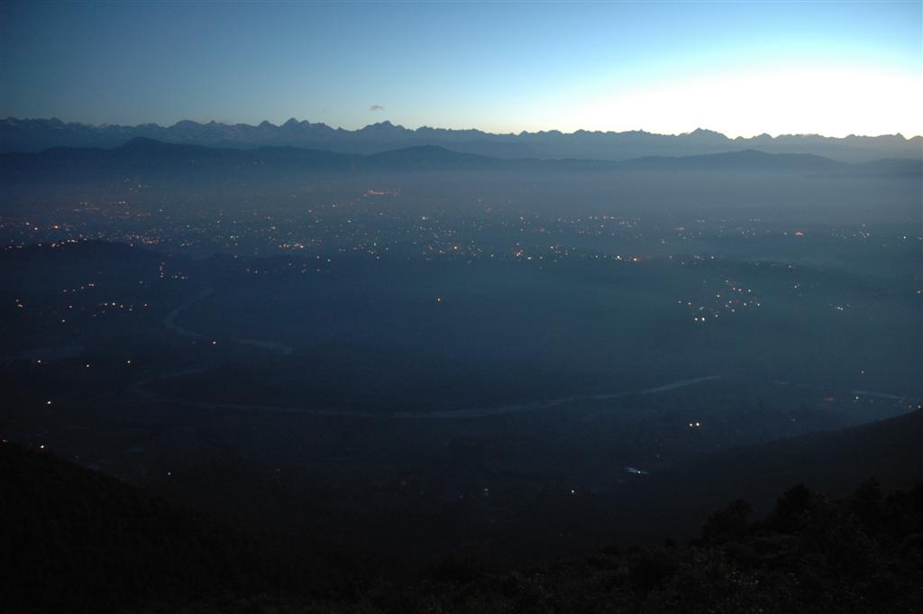 After a long break from posting in sajha I am back. I would like to share a picture I took on February 10, 2005 at 6:10 am from Hattiban ridge, overlooking the Kathmandu Valley.