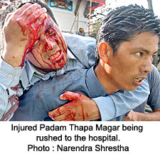 These kinds of pictures are misleading. These are the pictures taken by journalists who wait for hours before they capture a "sensational" picture, which portrays the ruthlessness and the brutality of policemen over ordinary citizens, while ignoring the general picture of the protests or the rally. And some of us here interpret what we see in those pictures, which are very specific part of the protest, as the general mood of the security forces on ground. This is completely misleading. Besides, these are the same policemen who were there even when Girija, or Makune, or Shere or any other elected government was in power. These security men have acted in almost the same way for every government within their limitations. So, it's not the type of regime which dictates the behavior of these people, but there are other factors which shapes their behavior towards the protestors and the ordinary citizens. I am not saying, however, we have the best trained and the educated policeman in the region. We need reforms. The protestors had the options of not coming to protests and not destroying public properties. They could have stayed in their homes. But, on the other hand, it was the responsibility of a policeman to act when the mob went unruly, just like it is your duty to type a report if your boss demands that of you. They do not have option, unless they leave their jobs.