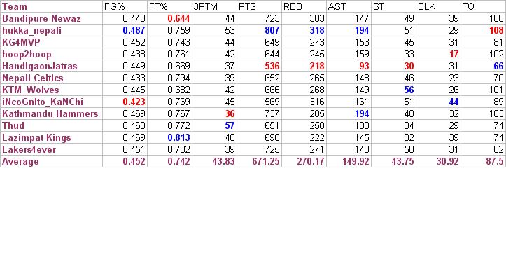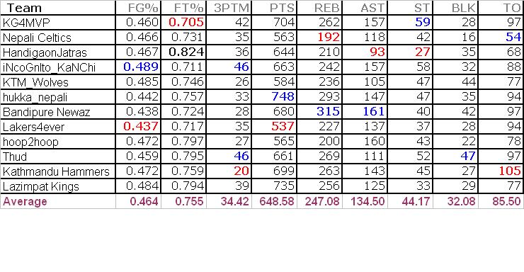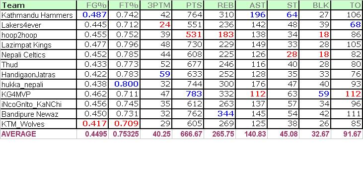 The reason, I have been putting up the weekly status is so the managers can see which team has moved up or down compared to last week or the week before. Clearly, nepaliceltics took the biggest jump, going from the 10th spot to the 7th in a week. Now, only stop away from the playoff bracket.