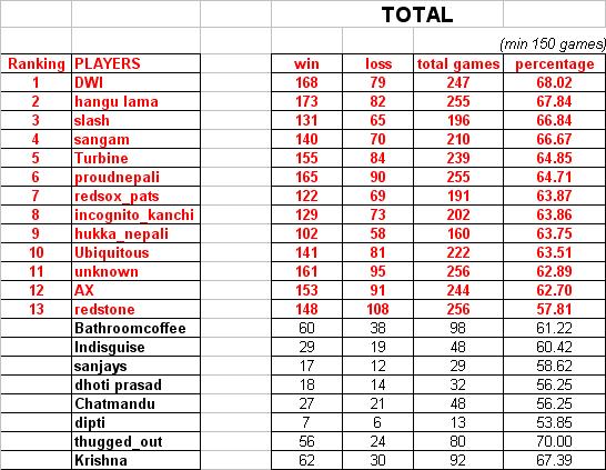 Following top 13 players (in red) are qualified for the next round :D:D Glad i am included ;);)