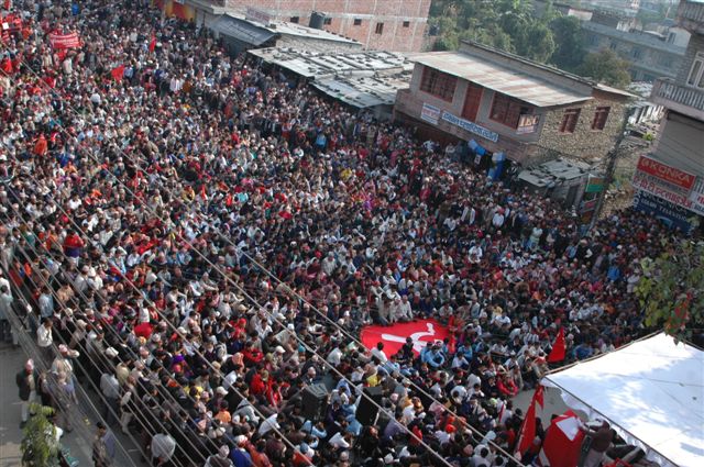 sea of people for a sea change ray ha ha ------------------------------------------------------ Aray bhoonte bhai, dont you see its at least 3 thousand people there. Anything above one thousand can be considered a sea in nepal (regardless of whether the 3 thousand have been accumulated from a city of 1 million). And sea change? everyday and eveyrwhere, sea of changes can be seen. Its not a big deal? Which sea of change are they talking about? Probably some earthquake in Pokhara? Or maybe Fewa Lake slowly disappearing due to lots of sediments? or widening or Seti gorge?